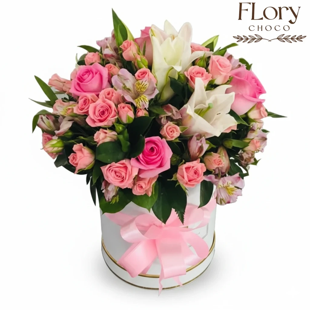 The Celestial Bloom Box is a luxurious floral masterpiece featuring an exquisite blend of soft pink and pure white blooms. Elegant lilies, delicate spray roses, and classic roses come together in perfect harmony, creating a sophisticated arrangement that soothes the senses and delights the soul.