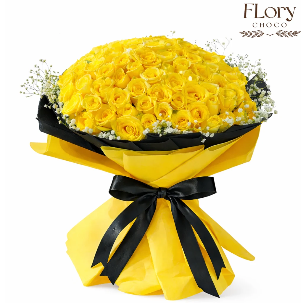 Make every moment brighter with the Golden Grandeur Bouquet, featuring 100 radiant yellow roses wrapped in a premium luxury style. A symbol of happiness, friendship, and appreciation, this stunning bouquet is perfect for birthdays, thank you surprises, or any heartfelt gesture.